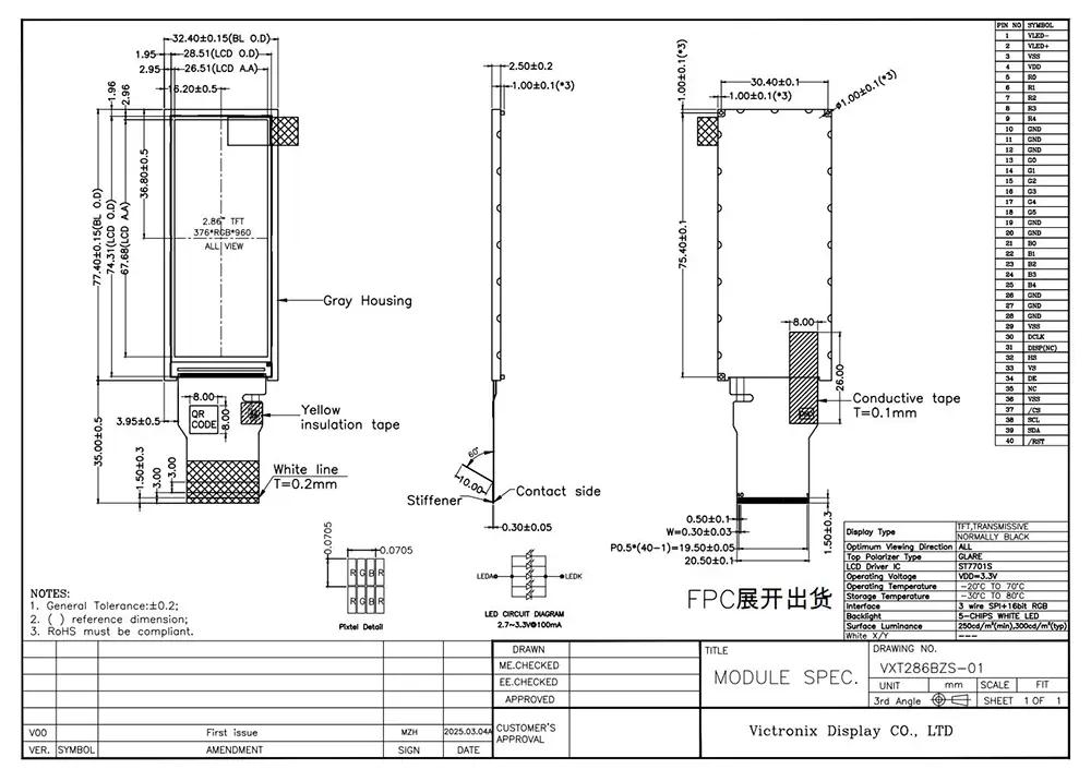 انٹلیجنس کے دور میں ، TFT ماڈیول ہمیں مطلوبہ ڈیٹا کو ضعف پیش کرنے کے قابل بناتا ہے۔ TFT ماڈیول کے معیار کا اس کے اطلاق پر ایک اہم اثر پڑتا ہے۔ وکٹرونکس 2.86 انچ 376 × 960 آئی پی ایس ٹی ایف ٹی ماڈیول کے کیا فوائد ہیں؟ پہلے تو ، اس کی 300 سی ڈی/m² چمک ، 1500: 1 اس کے برعکس تناسب ، 85 ڈگری دیکھنے والا زاویہ تمام سمتوں میں ، اور 80 ٪ یکسانیت واضح منظر کشی کو یقینی بناتی ہے۔ دوم ، یہ ایس پی آئی+16 بٹ آر جی بی انٹرفیس کی حمایت کرتا ہے جس میں ایس ٹی 7701s ہوتا ہے ، اور 5 ڈیڈ وائٹ ایل ای ڈی بیک لائٹ 30،000 سے 50،000 گھنٹے کی زندگی کے ساتھ ، مختلف صنعتی ایپلی کیشنز میں اس کی طویل مدتی استعمال کو یقینی بناتا ہے۔ اس کے علاوہ ، یہ ROHS کے معیارات پر عمل پیرا ہے اور 8KV ہوا اور 4KV رابطے تک تھرمل جھٹکا ، نمی ، اور ESD تحفظ سمیت سخت وشوسنییتا ٹیسٹوں کو کامیابی کے ساتھ پاس کرتا ہے۔ یہ پروڈکٹ -20 ° C سے +70 ° C تک کے انتہائی درجہ حرارت میں موثر انداز میں کام کرتی ہے اور اسٹوریج کے شدید حالات کو -30 ° C سے +80 ° C تک برداشت کرسکتی ہے۔