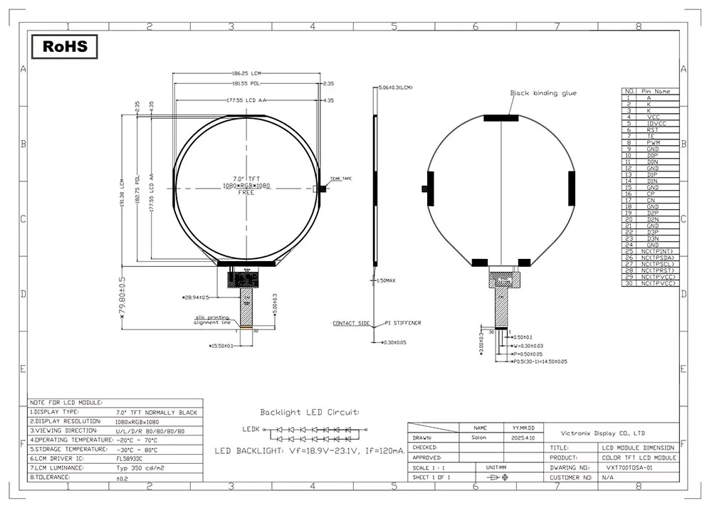 TFT ماڈیول زندگی میں ہر جگہ پایا جاسکتا ہے۔ اس ویکٹرونکس 7 انچ 1080 × 1080 راؤنڈ IPS TFT LCD کو دوسرے مینوفیکچررز سے کیا فرق پڑتا ہے؟ سب سے پہلے ، اس کی 500 سی ڈی/m² چمک ، 800: 1 اس کے برعکس تناسب ، اور تمام سمتوں میں 80 ° کے زاویوں کو دیکھنے کے زاویوں کو یقینی بناتے ہیں۔ دوم ، آلہ تیز رفتار ڈیٹا کی منتقلی کے لئے FL5893DC کنٹرولر کے ساتھ 4 لین MIPI انٹرفیس کی حمایت کرتا ہے۔ مزید برآں ، اس میں 32 سفید ایل ای ڈی بیک لائٹ کی خصوصیات ہے جس کی عمر 30،000 سے 50،000 گھنٹے ہے ، جس سے مختلف صنعتی ایپلی کیشنز میں قابل اعتماد کارکردگی کو یقینی بنایا گیا ہے۔ اس کے علاوہ ، یہ ROHS کے معیار پر پورا اترتا ہے اور انتہائی درجہ حرارت (-20 ° C سے +70 ° C) میں بے عیب کام کرنے کے لئے سخت وشوسنییتا ٹیسٹ (تھرمل جھٹکا ، نمی ، اسٹوریج) سے گزرتا ہے اور سخت ذخیرہ کرنے کی شرائط (-30 ° C سے +80 ° C) کا مقابلہ کرتا ہے۔